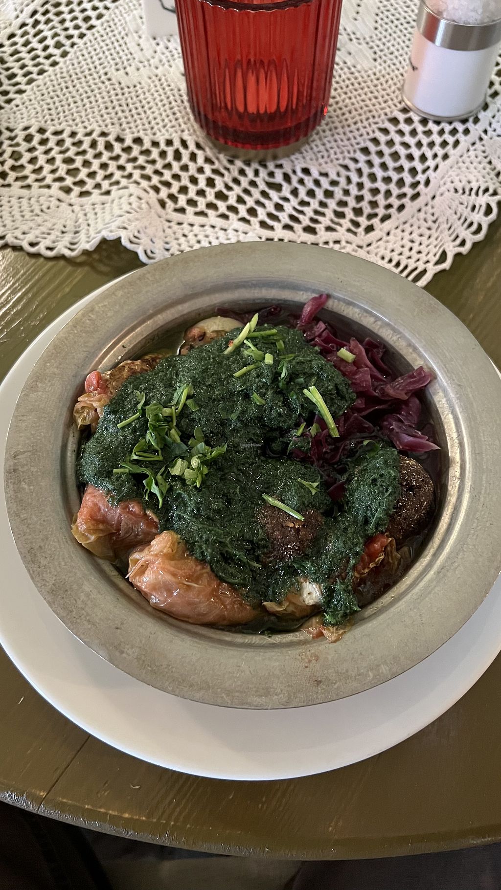 The owner is and old lady who clearly is the best cook in town, my friend had a vegetarian moussaka that was delicious and I had the vegan Saha wich was dolmas and some rice balls with Nettle pesto. Soul food. I didn’t get the chance to try the vegan desserts as there weren’t available but I would definanatey come again. The place is very cozy and tastefully decorated and the service was really quick
