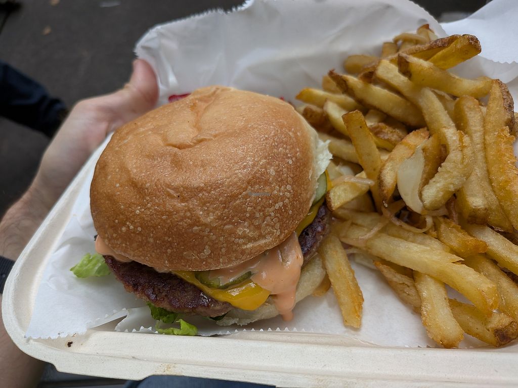 Trashy burger with fries