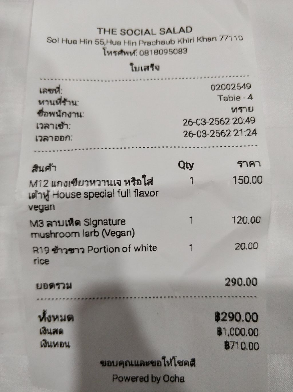 From the 190 Baht make your own salad menu.