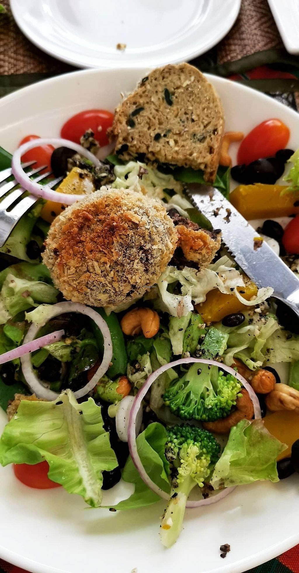 Black bean patties with vegan bread and self chosen salad.