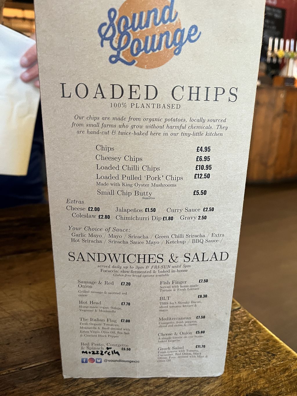 Chips and sandwiches menu