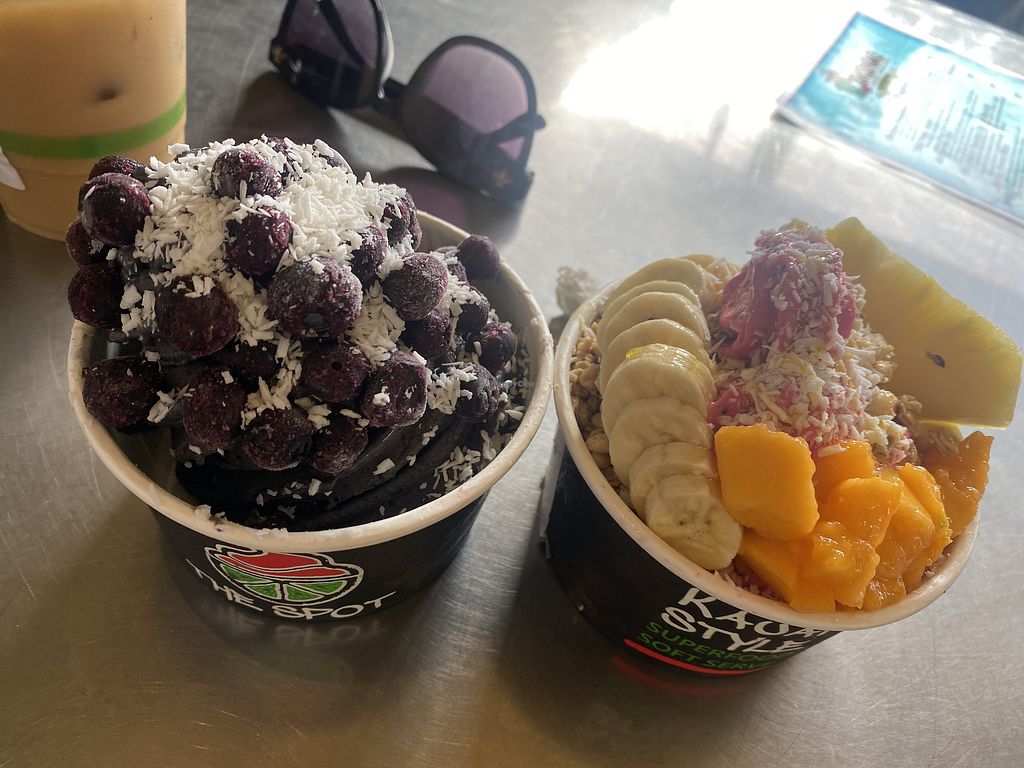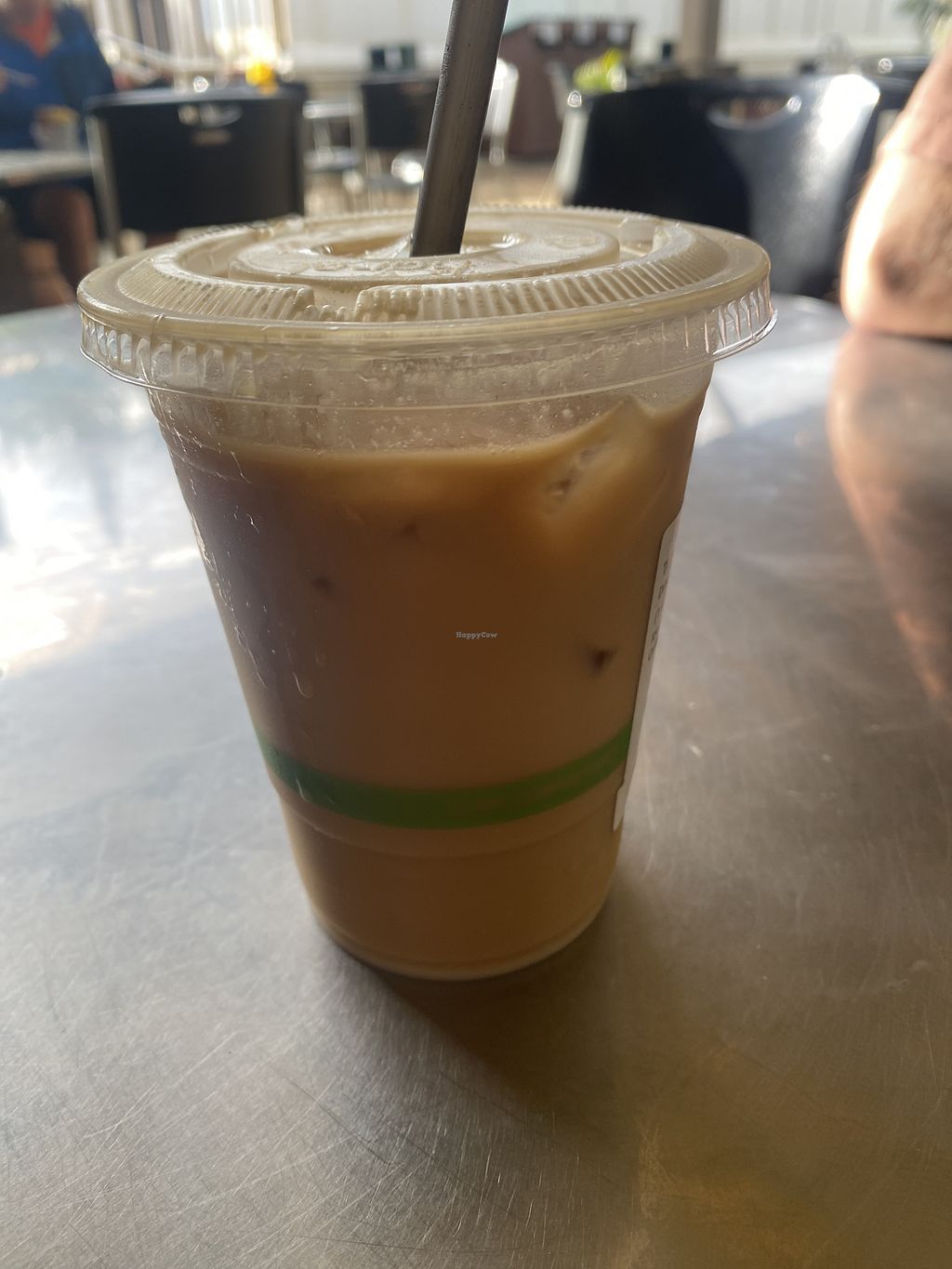 Such a great place for bowls! The bases are vegan and sooo flavorful. i got the thai coffee somethinf iced latte with oat milk instead of dairy and omitted the whipped cream which they were happy to do!