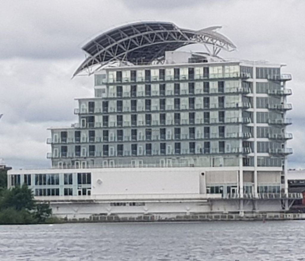 Serves meat, vegan options available. The Admiral Restaurant at The St David's Hotel is open to the public. Dining menu includes fourteen vegan items and staff can clarify ingredients or modify other dishes. Also offers accommodation and room services is available for guests. Vegan menu choices include breakfast, black pepper tofu, pumpkin curry, a burger, salads, and a blackberry panna cotta.