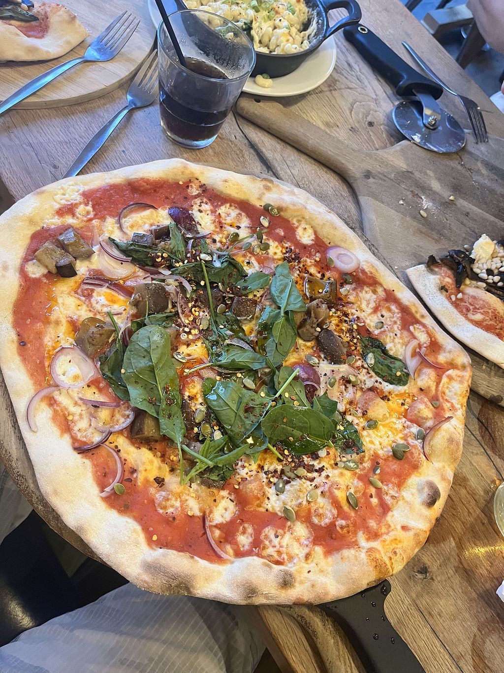Went for lunch on a random tuesday. Seemed busier that it should have been and staff were a bit up against it. So service was pretty slow for every aspect of the lunch. Otherwise, nice food and good pizza. A good find for vegan options also.