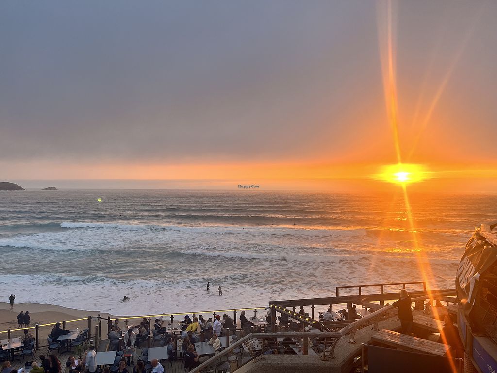 We spent an amazing evening here eating delicious vegan pizzas and watching the talented surfers on Fistral beach.