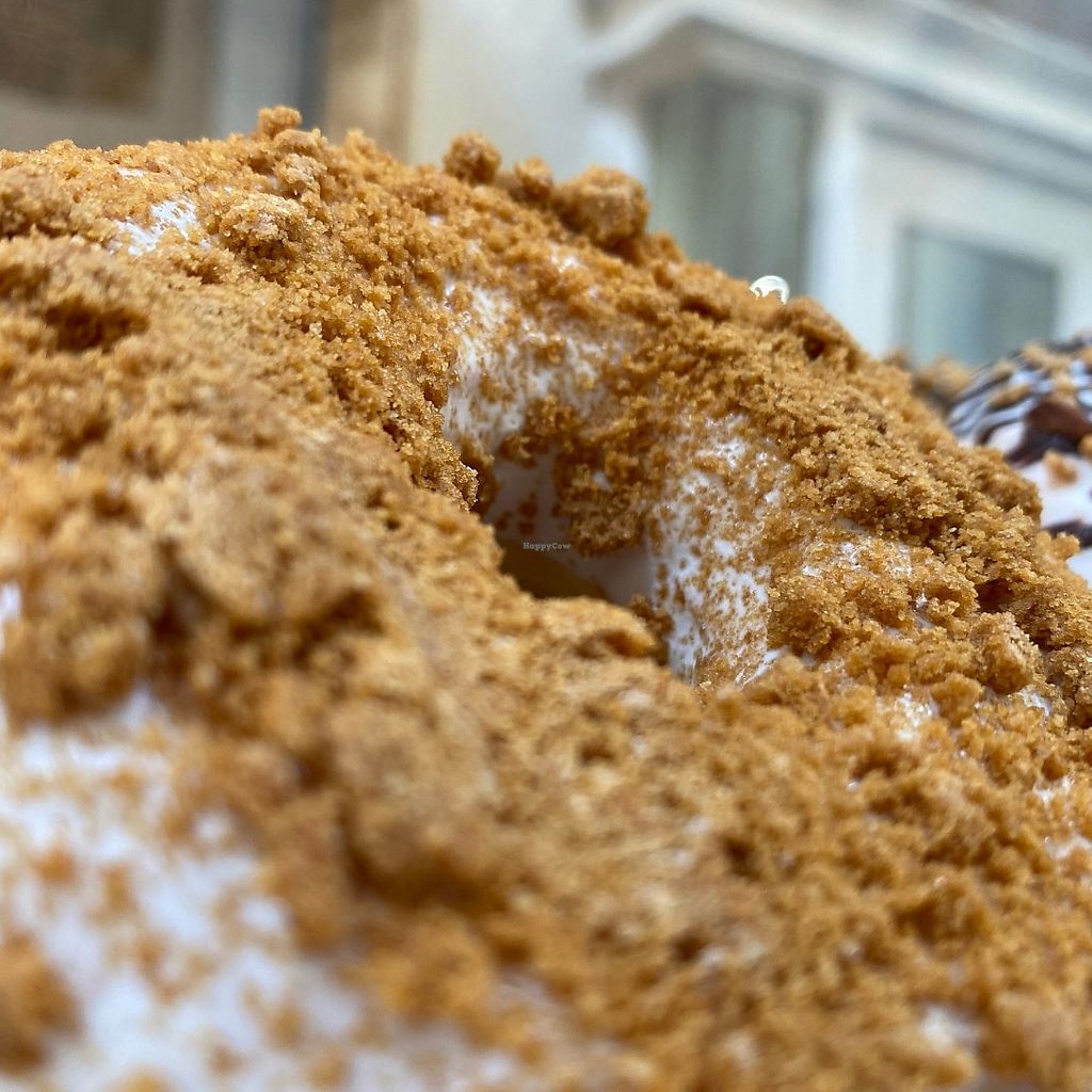 Serves meat, vegan options available. Kiosk/café offering a few vegan items such as bagels, bao buns, sausage roll, burritos, cooked breakfast, hot chocolate with vegan cream and cakes. Every Friday offers a half portion of fries for free when ordering a main (upon asking). Reported closed September 2024.