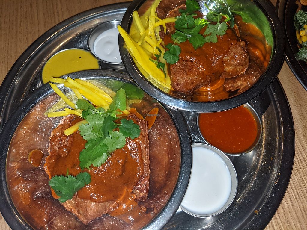 Jackfruit Vindaloo, Black Lentil Kofta, and Tofu 'Paneer' Samosa
