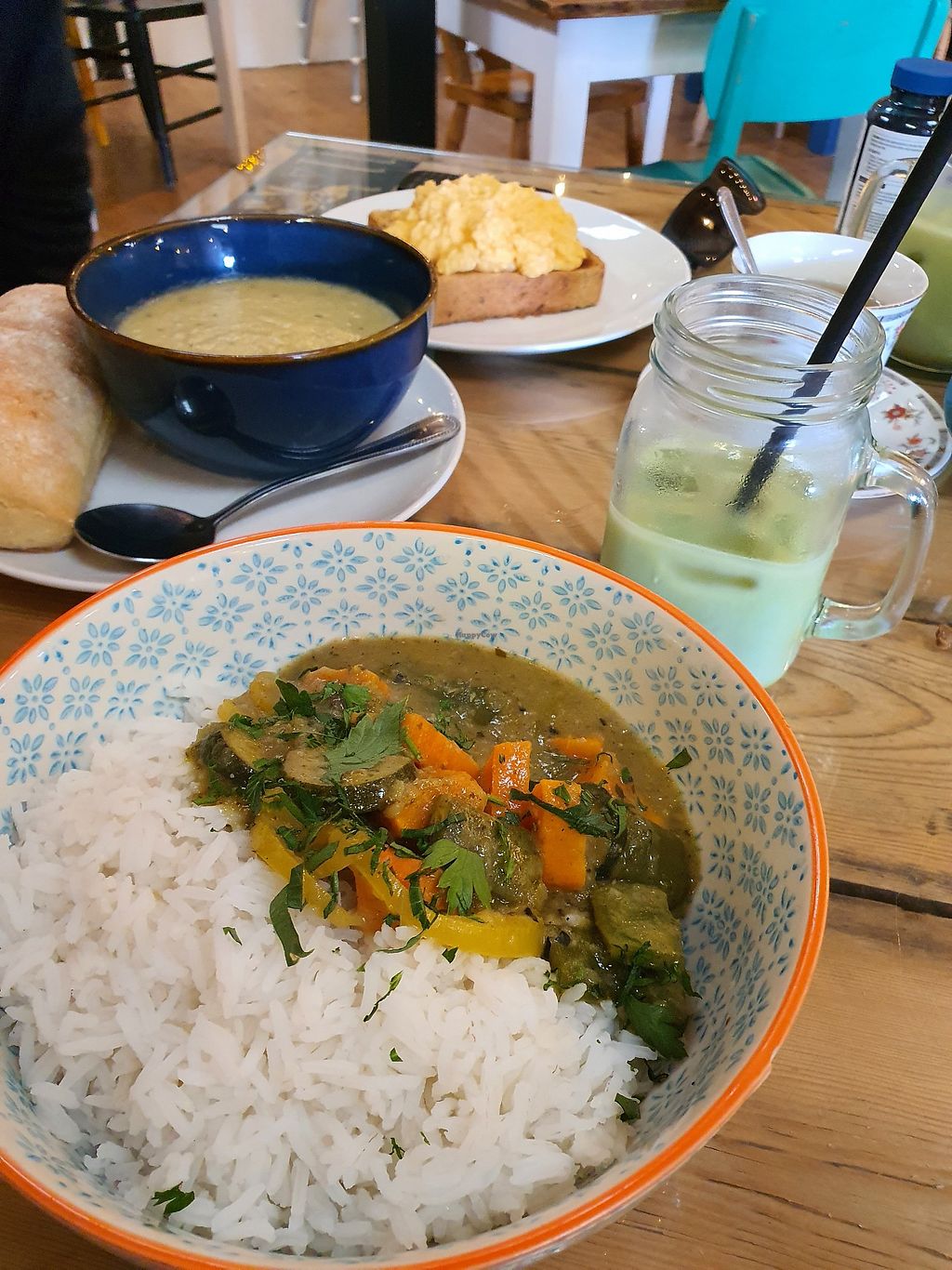 We had an absolutely lovely trip to The Old Station Sugarplum Tearooms! Clearly labelled vegan options lots of vegetarian options. The special was vegan which was Thai green curry which I had and it was perfect. They had oat milk and matcha. Will definitely visit again to try breakfast menu they have veggie and vegan breakfast and avo on toast but stop around midday and they change to lunch. Also dog friendly with dog menu! Nice decor and good vibes!