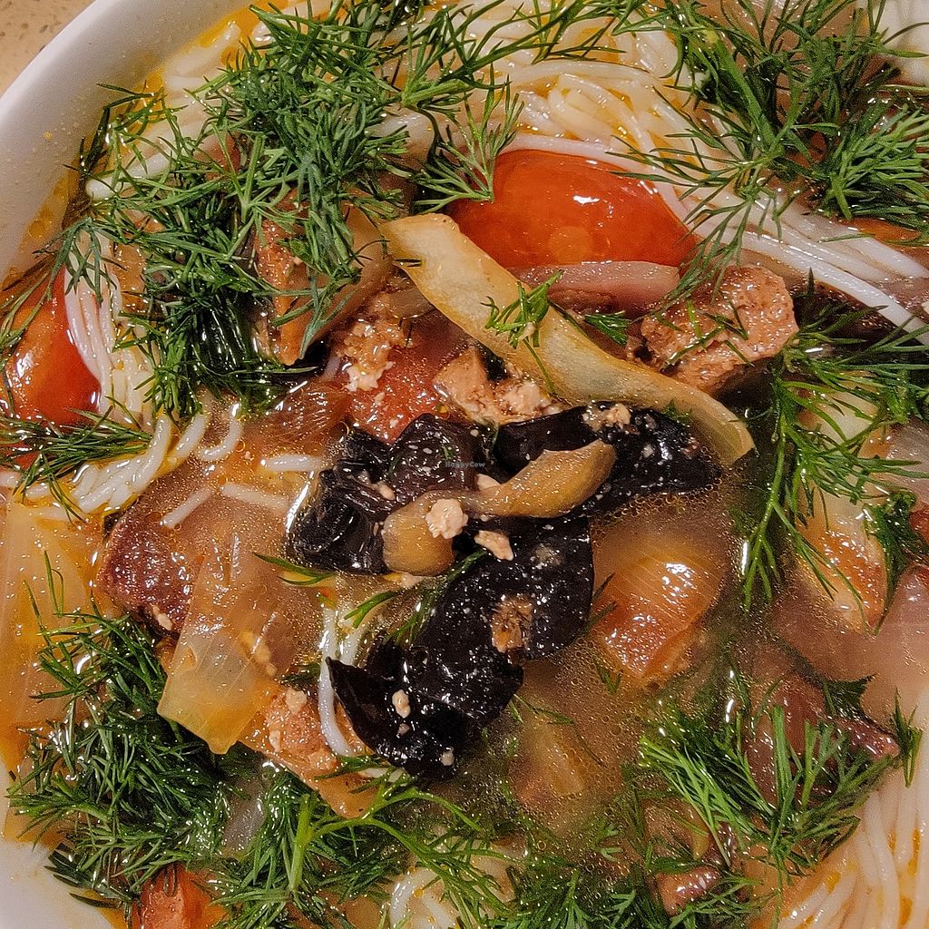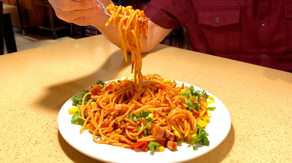 I love the spicy pho, I keep putting more spicy sauce. I love anything spicy! There were many kind of vegan “meat”, tastes all are different. The desserts were great as well! The slide of bandan cake is big and tasty