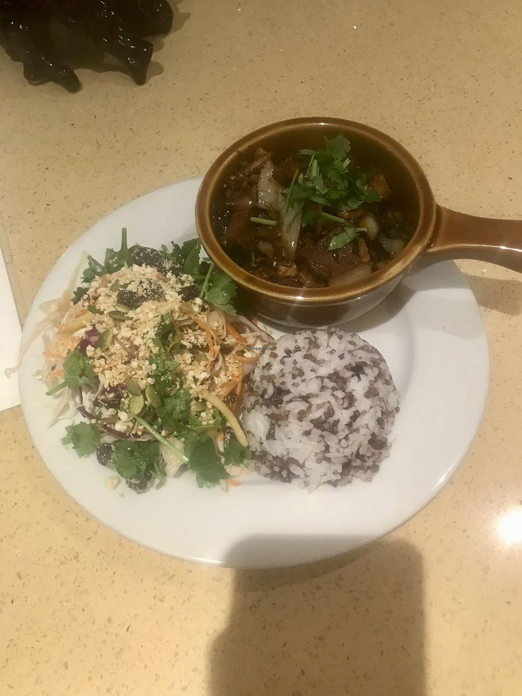 Let me just say no matter what you order you’ll never be disappointed. I highly recommend the summer rolls to or the heavenly salad to start. The curry and vegetable pho soup and the lemongrass soup are perfection. Don’t forget to add your chili oil!! Ann sells them so pick one up on the way out. The outside dinning is very lovely. Always clean and neat. You’re always greeting with pleasantness and smiles. Ann and her husband are amazing people that serve amazing , fresh and all vegan food.