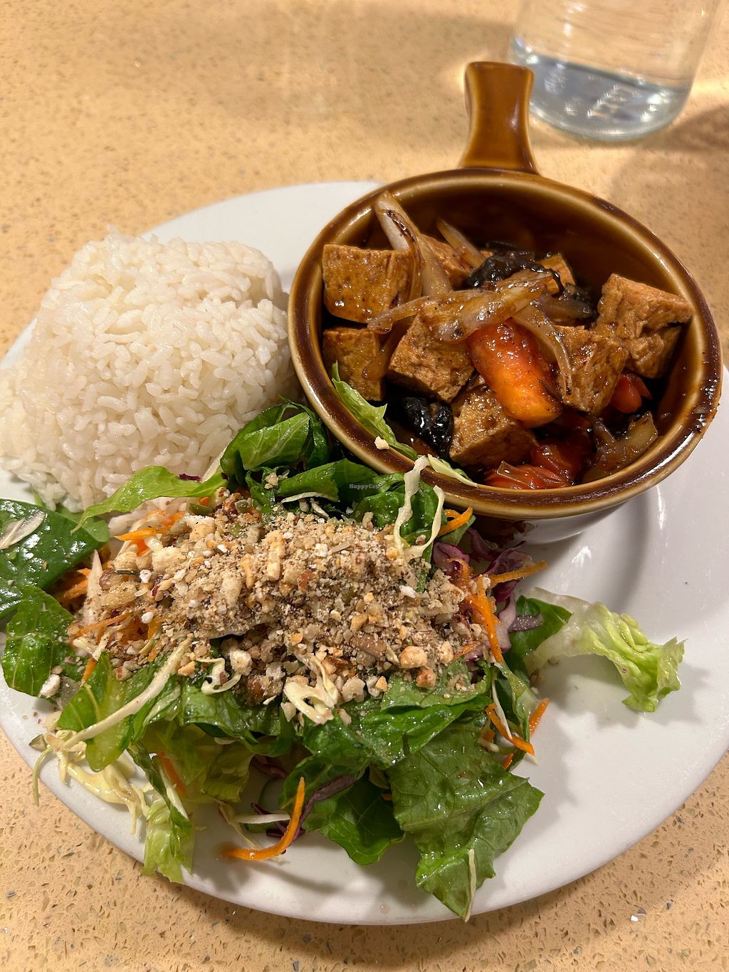 Got the tofu tomato stir fry. It was great. Only $13 👍 not bad. They also had lots of desserts like chocolate cake, and different cheesecakes 😋