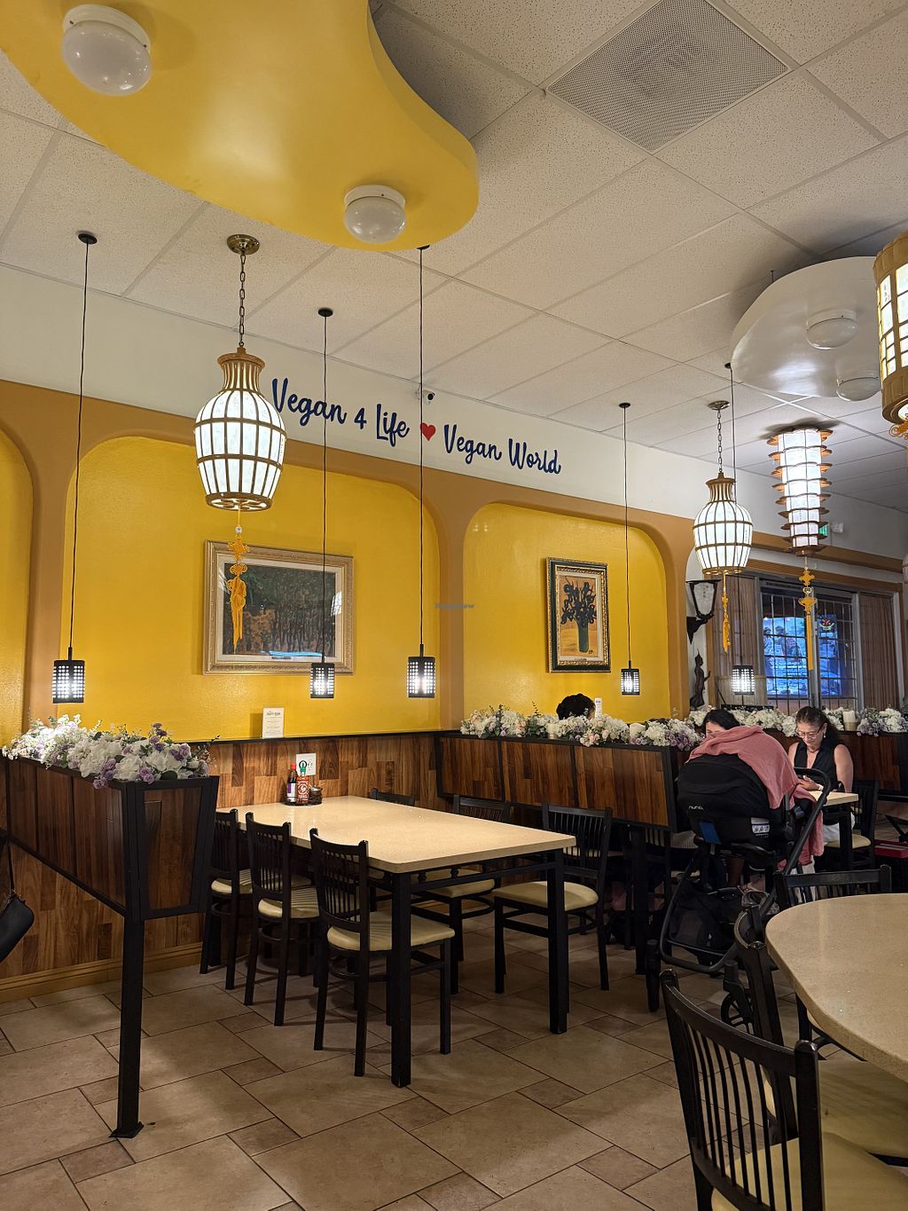The food and service was excellent. I would give 5/5 if not for the anti-vax conspiracy channel playing on the TV and the shrine for the cult leader "Supreme Master" on the wall. The food is great but it's kind of creepy vibes.
