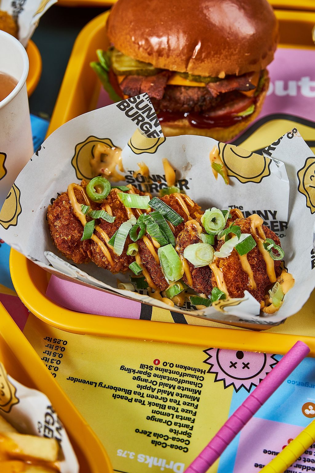 Onion rings and nuggets and sriracha mayo