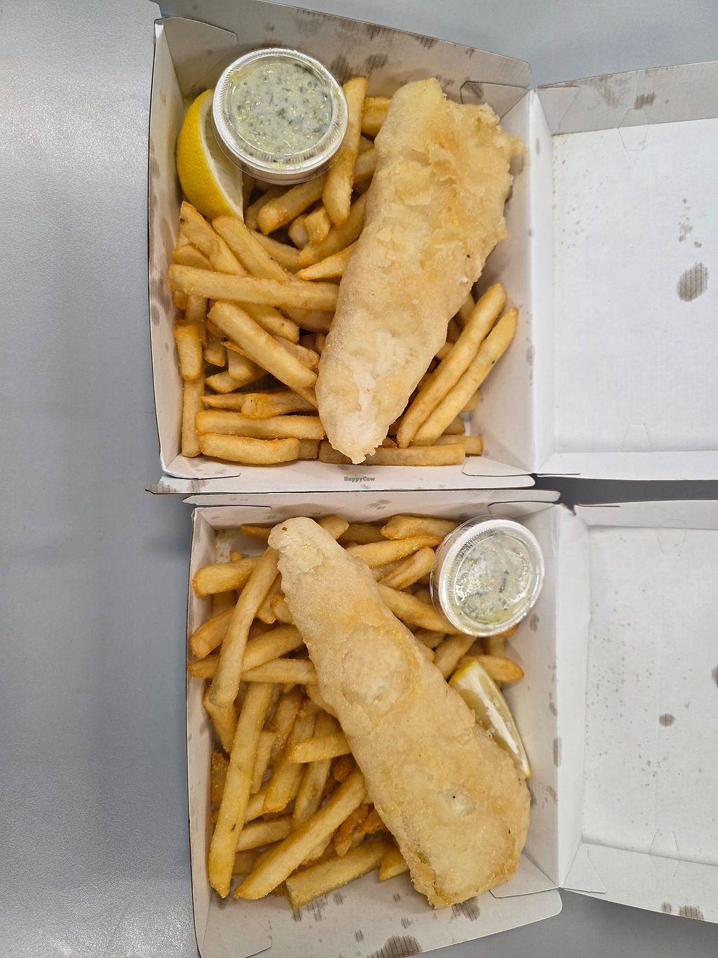 Lacto Ovo Beer/Wine Take-out British Honey Non-veg Serves meat, vegan options available. Fish & chips restaurant offering vegan fish & chips and red cabbage slaw. Open Mon-Sun 10:00am-8:00pm. More
