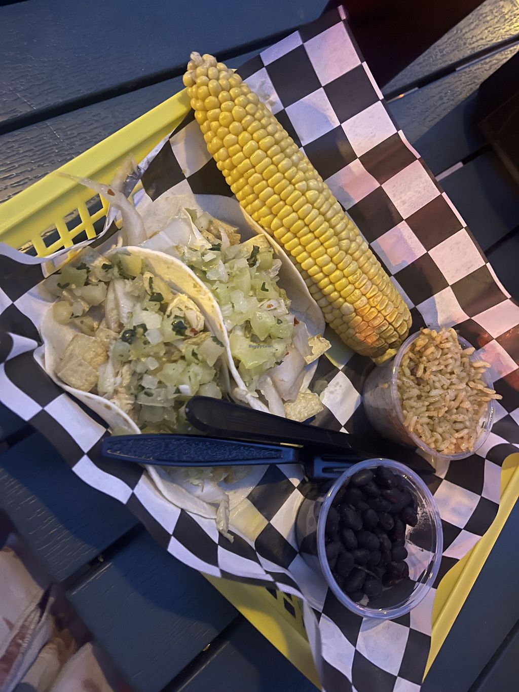 The crispy tofu & kimchi tacos were really yummy! The rice and beans were good too, but the corn was extremely bland.