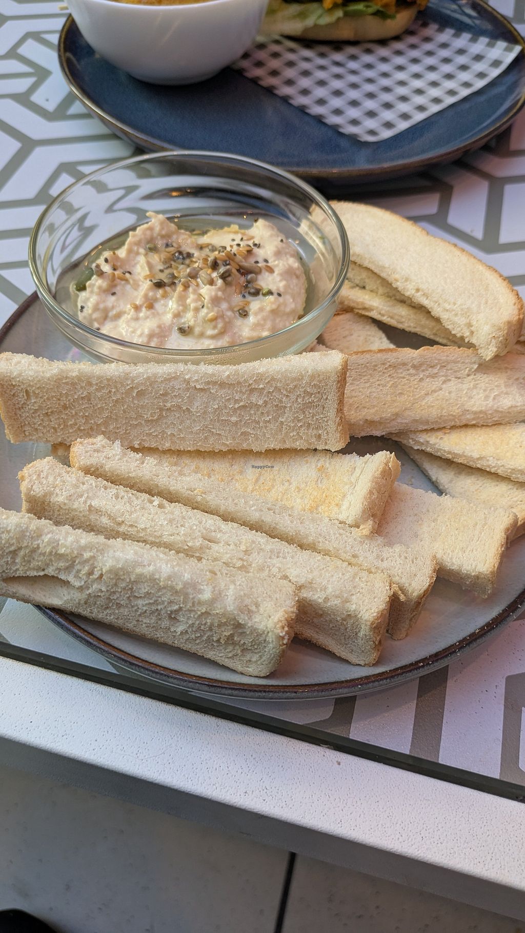 They have a plant menu, which was encouraging. I imagine if you go for the obvious, such as the chilli or the Moving Mountains burger it'll be fine. I ordered the hummus and bread. On the plus side, the small bowl of hummus was quite nice. I wasn't expecting it to turn up with Happy Shopper white bread cut into soldiers. Does anyone eat cheap white bread out of choice? My other half ordered the lentil burger and although it had a nice flavour, it was sloppy mashed lentil fashioned into a squishy pattie. The chips were nice, it's a shame there weren't more of them. 50p charge for plant milk. It was £29.10 for the hummus, crap bread, lentil burger, chips, one tea, one coffee.