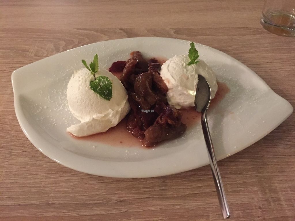 milky rice with cinnamon plums