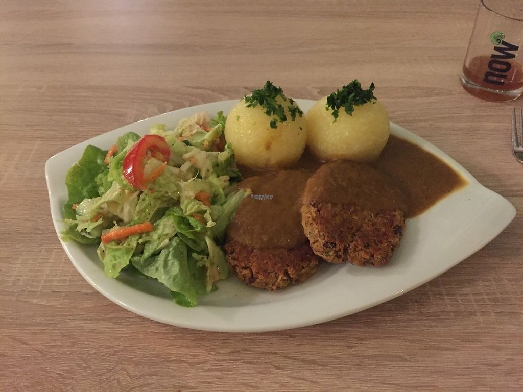 cauliflower patties with mango sauce and potatoes