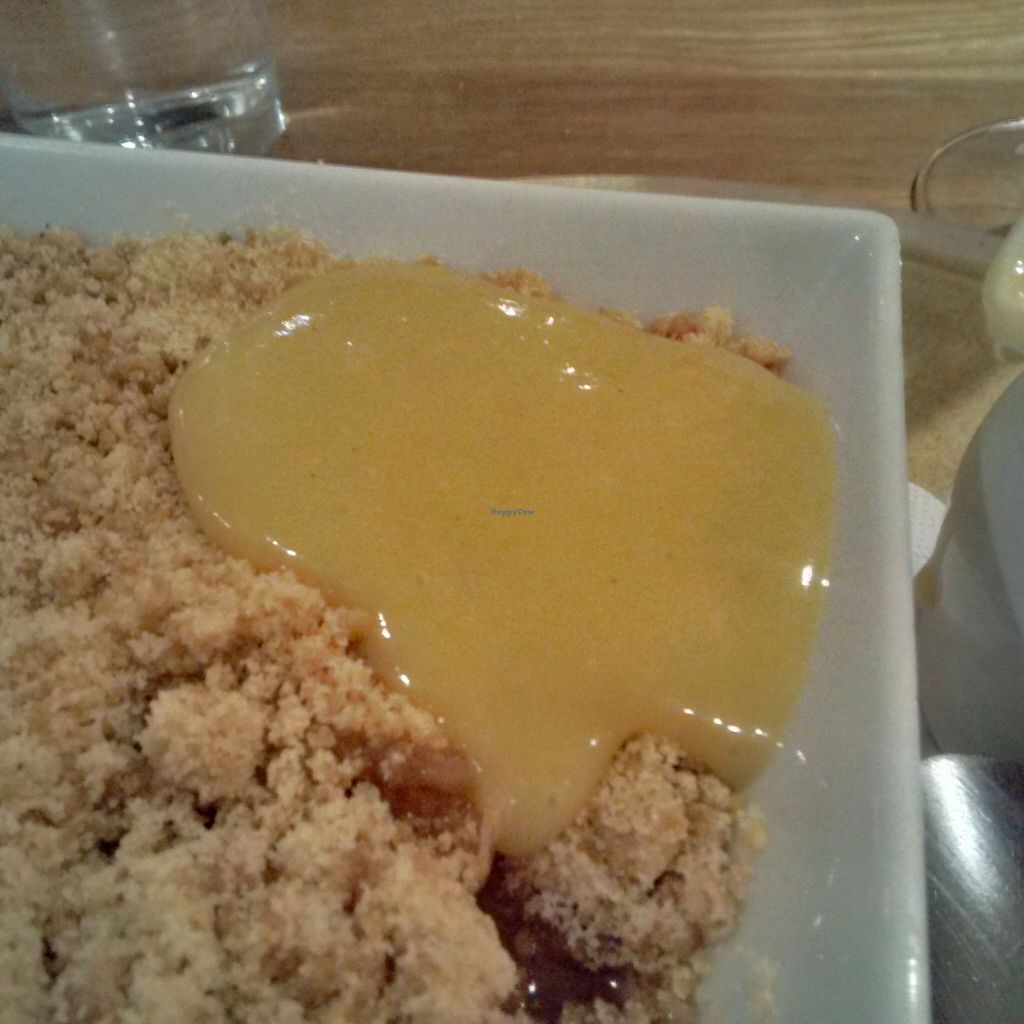 Apple crumble and almond milk custard