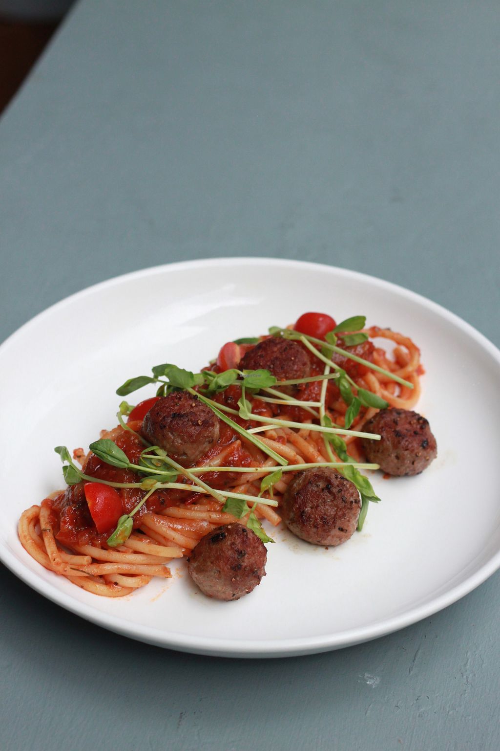 Vegan meatball pasta ($16) consisted of pasta with cherry tomatoes and plant-based meatballs. The pasta was relatively tasty but unexciting.
