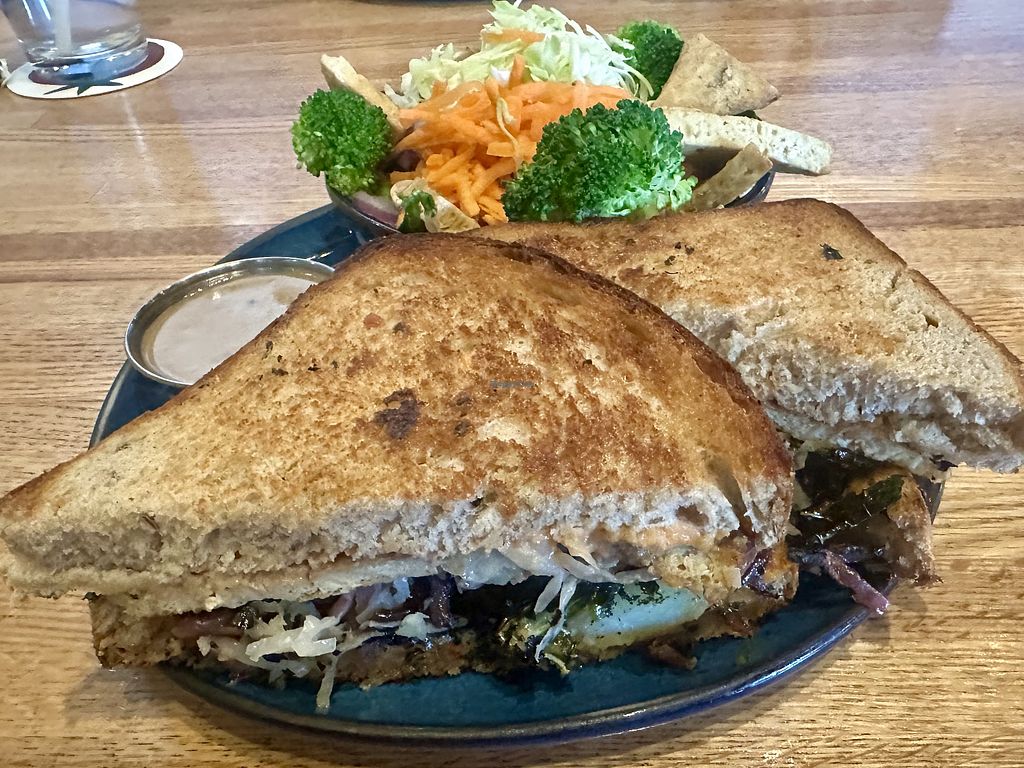 Rueben with Baked Tofu, Side Salad with Mushroom Sesame Dressing