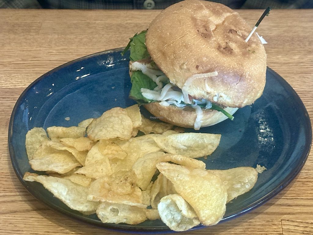 Tofu sandwich and chips