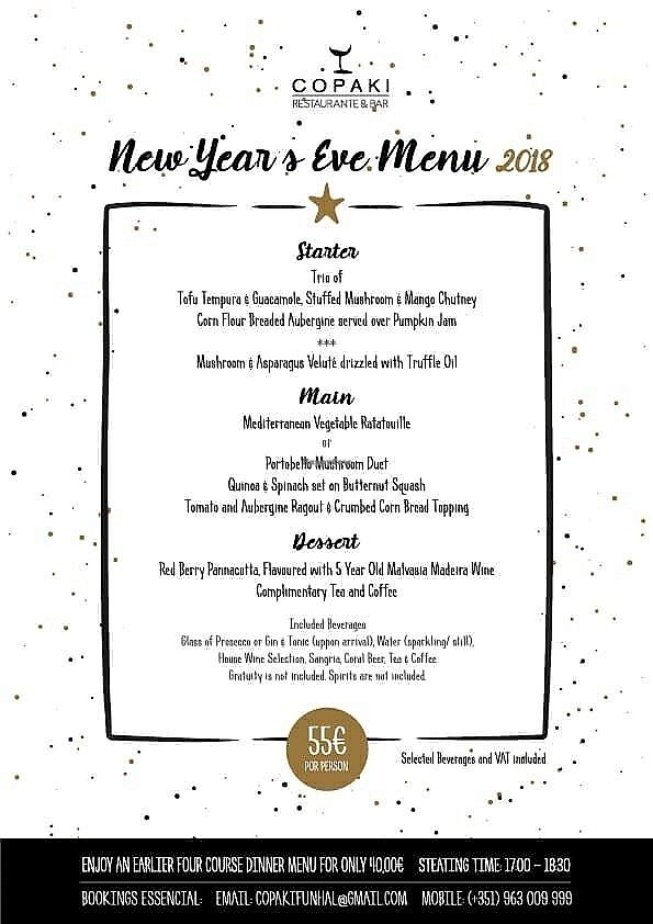 Vegan New Years Eve menu 31/12/2017