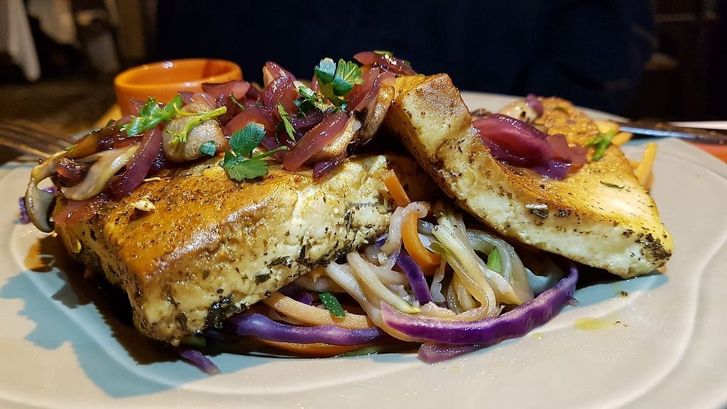 Grilled tofu with onions (portion sizes seem smaller than previous pho…
