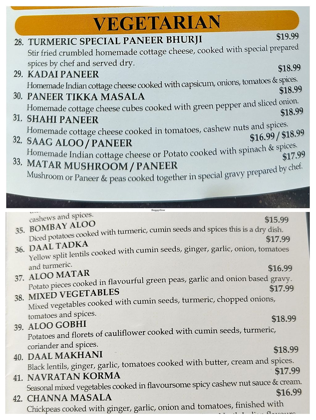Serves meat, vegan options available. Restaurant offering clearly labeled vegan and veganizable dishes like vegetable pakora (mixed vegetables in chickpea batter), onion bhaji (spiced onion fritters), tandoori soya chaap (soy-based skewers in spices), and green peas pulao (basmati rice with peas). Request items without yogurt, butter, or ghee. Open Mon-Sun 12:00pm-10:00pm.