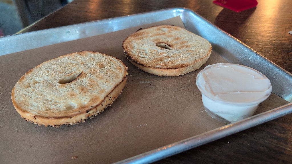 I had a really nice experience the couple times I’ve been here. They always had 1 or 2 vegan treats (donut/cake). They were yummy. The ambiance is really nice. One of the times I went, and random customer started playing a really nice tune on the piano. The manager (or at least I think she was the manager) is very nice, very accommodating, knows what is and isn’t vegan. A few of the menu items that aren’t marked with a V or VGT can be made vegan if you ask for an adjustment/substitution. I only have a few minor hang ups: they have so many yummy bagel flavors, but no vegan cream cheese. I ended up ordering on with PB&J which was delicious, but VCC would have been nicer. Also, to make the entrees vegan, they generally swap the bacon, eggs, pork, chicken, etc with Oumph. And Oumph is good, don’t get me wrong. But I just wish they had more than that as a sub (although they do have Impossible Burgers for their burgers now for $2 I think). Oumph does have a “scrambled hard egg... but I also maybe clam” texture, so it’s a little odd using it as a bacon sub. Tastes good though, which is what matters I guess. :)