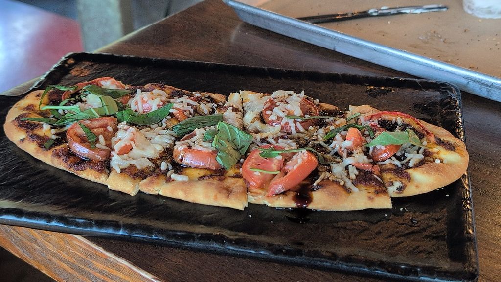 We had the black bean flat bread and the BBQ pineapple pulled "pork" with the cucumber tomatoes salad as a side, both vegani-ized of course. We were NOT disappointed at all. The atmosphere is so nice as well, along with the staff.