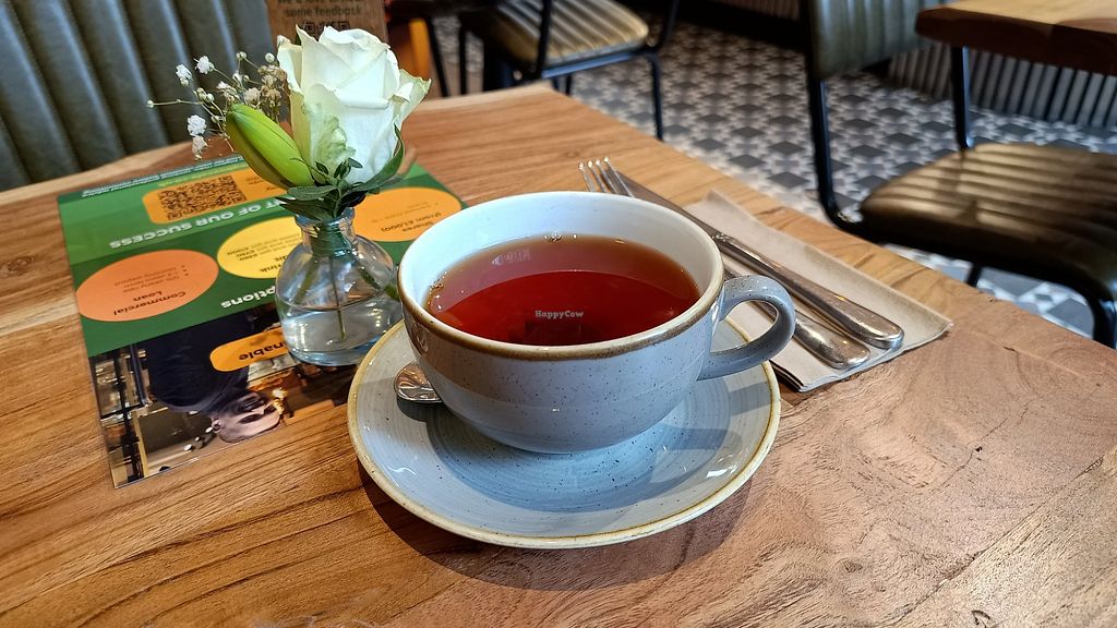 I kind of ended up here accidentally as another vegan restaurant was closed. My fear was that it was a ‘typical British’ experience (I got a bit tired of British food after travelling in the UK for long). It wasn’t at all. They serve English breakfast but they have so many other great options, we tried the croissant (one of the best I ever had!), the crostini with onion, and the pancakes. Everything was super delicious and staff was so so friendly it was such a nice experience to have lunch here. The only thing that was a bit off was that the music was a bit loud for my liking. But maybe I’m just getting old😄