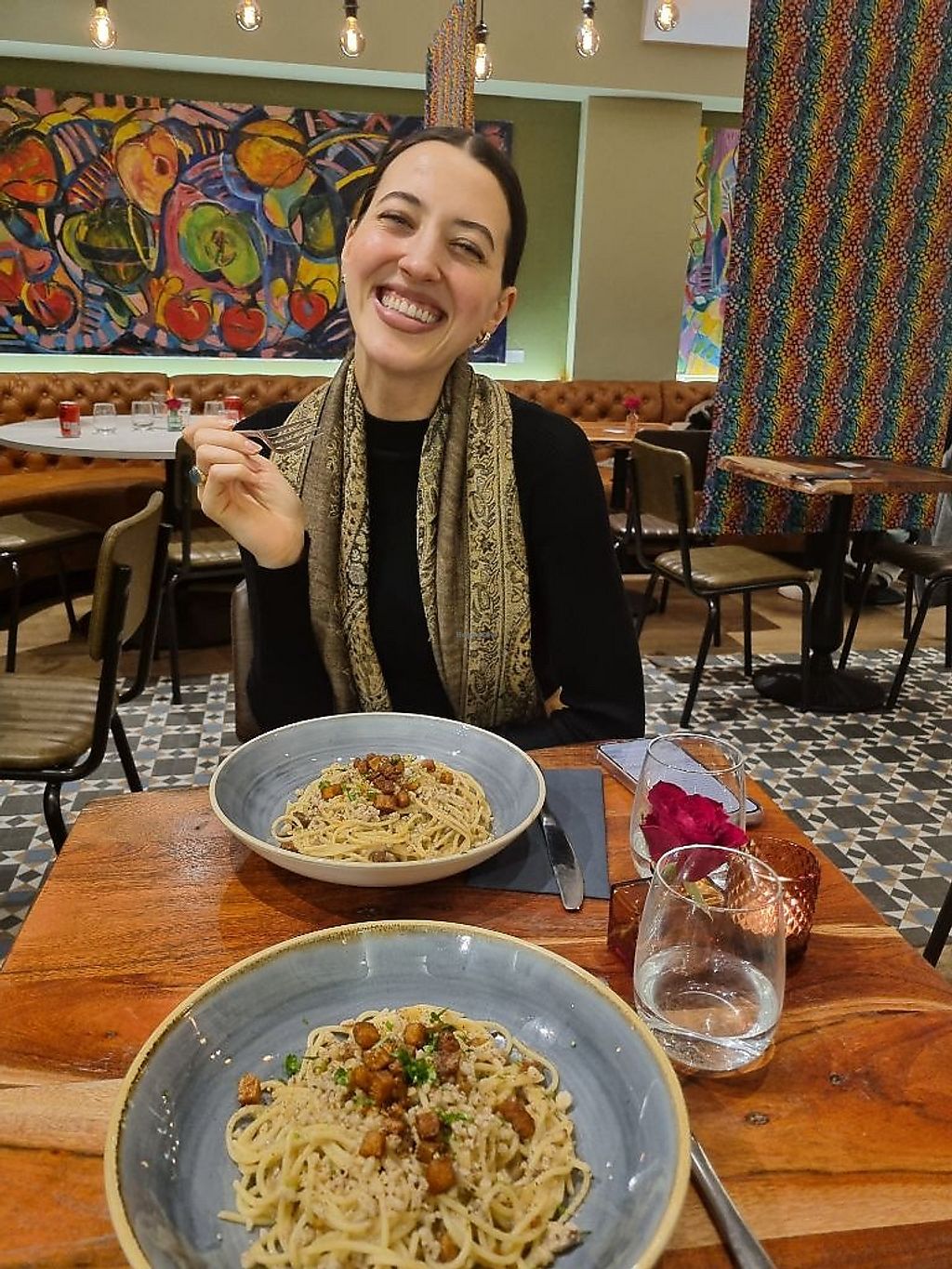 Went here for brunch and as always had choice paralysis as everything vegan! Had a frittata and a side of tofu scramble with an oat latte. Was delicious and service was friendly. Was able to get a table here for brunch on a Monday without booking in advance and was quiet enough to enjoy chatting with friends and not feeling rushed. Will definitely return here on London trips.