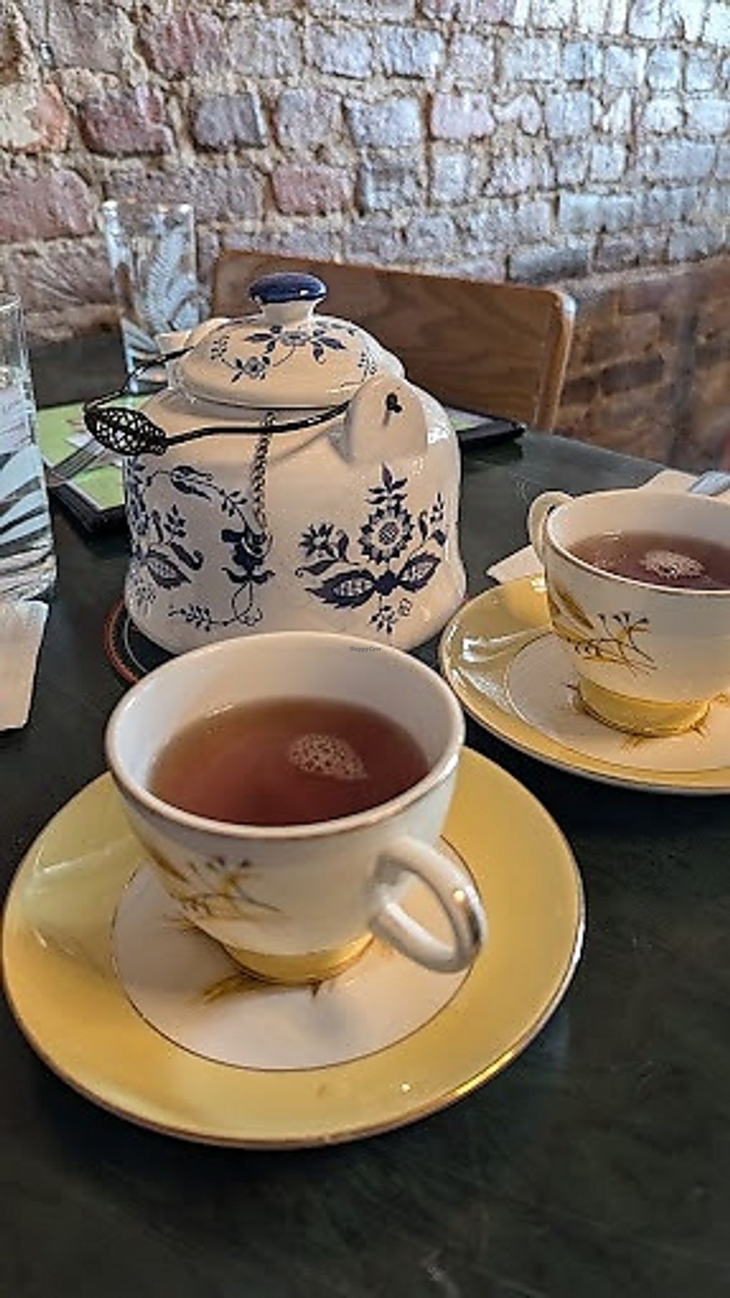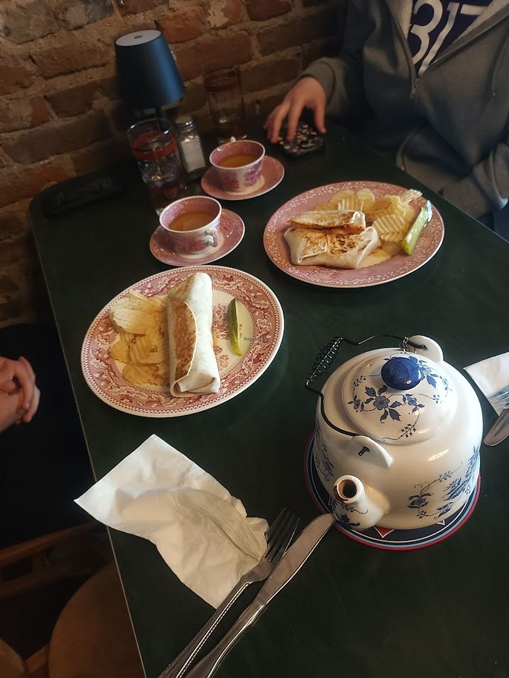 We thoroughly enjoyed the chipotle brat & sauerkraut, grilled cheese, and coleslaw. The coleslaw (creamy) is tastier than the dairy version. The southern belle herbal tea was lovely.