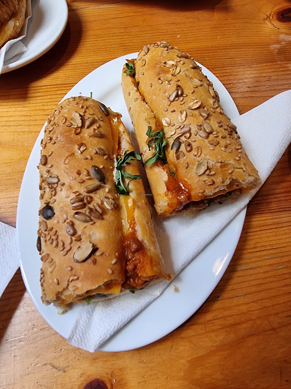 Quaint (all vegan) cafe serving amazing pastries and lovely coffee. Coming back later to sample the baguettes (see photo, how could we not!)