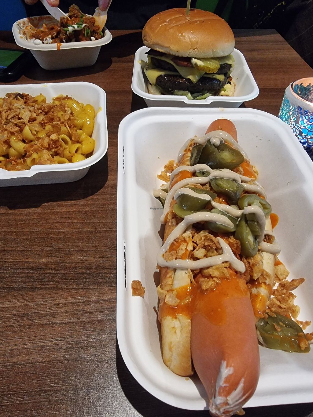 Buffalo Hot Dawg with mac n cheese side