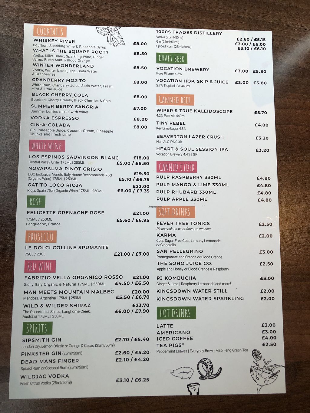 Drinks Menu as of Feb 2022