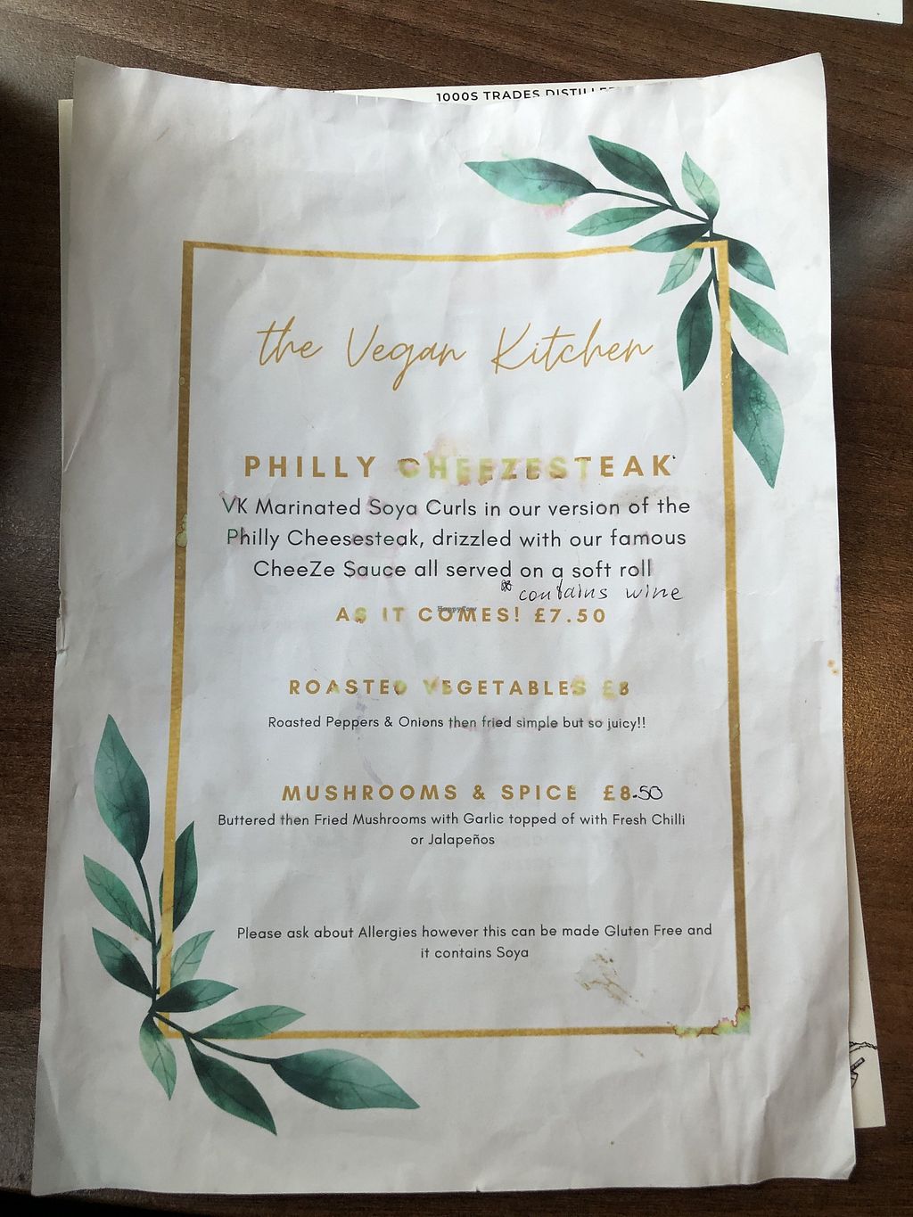 Menu as of Feb 2022