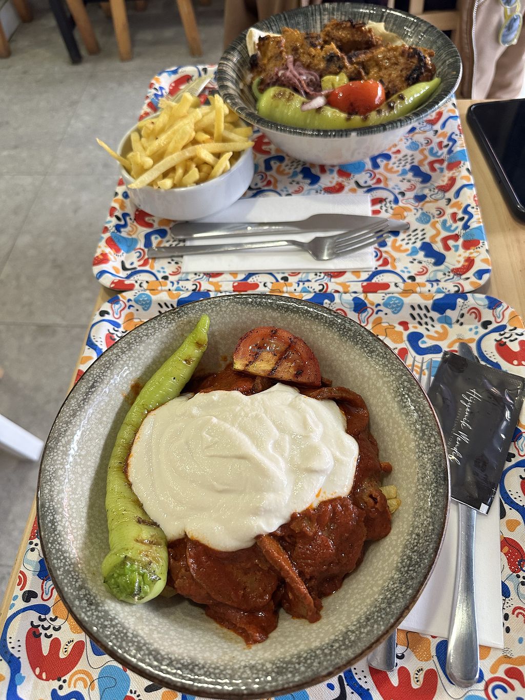 The fried vegetables were mostly peas and sweetcorn which was disappointing. Despite the iskender kebab being drenched in sauce and shish kebab lacking sauce, neither really hit the spot for us.