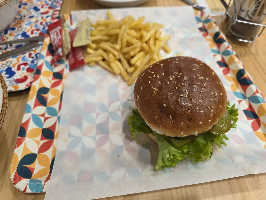 Vegan Food Cartel was our final eatery after a month in Istanbul. It was a good choice. There were three tables outside and more inside. It was a nice spring day, so we opted for al fresco. We're not frequent mock meat eaters, but the reviews suggested they were worth trying here. So we ordered the doner wrap and the crunch burger. They were great; would definitely order those again. The service was friendly and good value for a filling lunch.