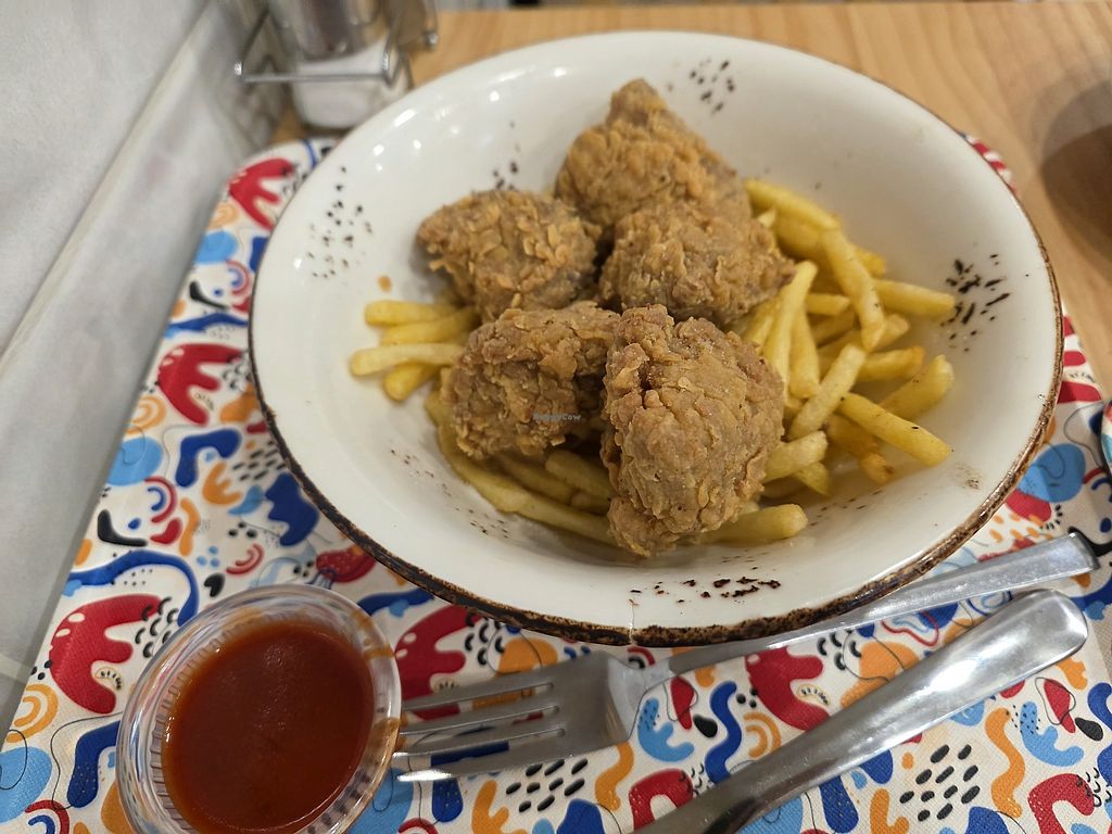 The food was fine, though was very simple and lacked flavour - it was pretty much 'chicken' nuggets and chips or rice.