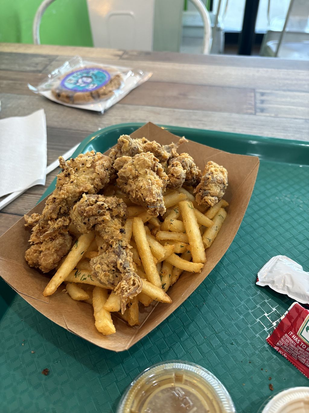 The food was pretty terrible. The chkn sandwich was more of a savory turkey sandwich with gravy. I just didn’t feel like any of it went together. I also got a wrap which was underwhelming. The fries were good.