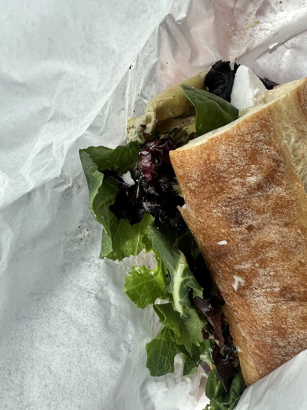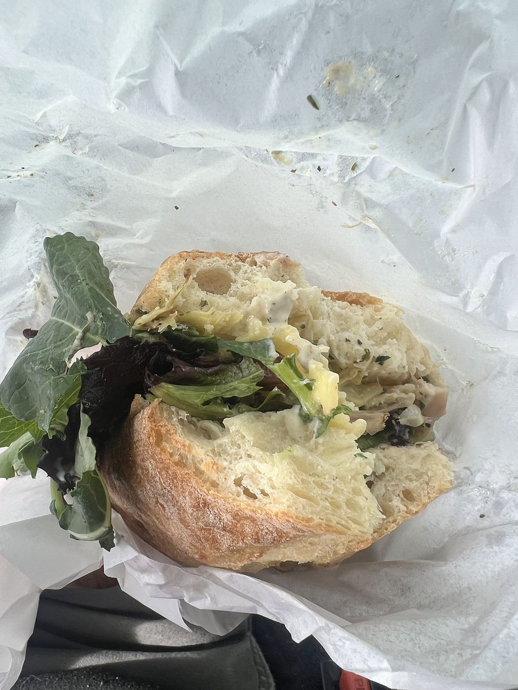 Everything was delicious! We had the caprese sandwich and the melted artichoke one — the caprese was the favorite!!! The potato salad was also so good. Service was phenomenal, so helpful! Oh and the rolls the sandwiches were on — SO GOOD!!