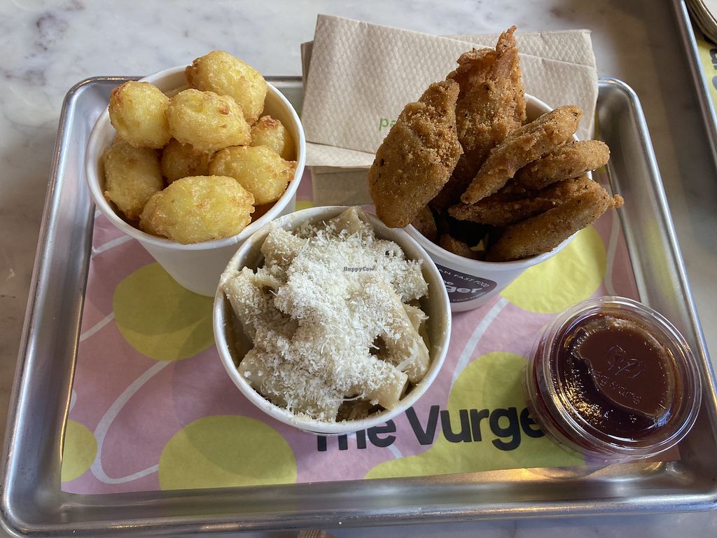 Tater tots, fried chicken strips & Mac nβ cheese (ALL GF)!