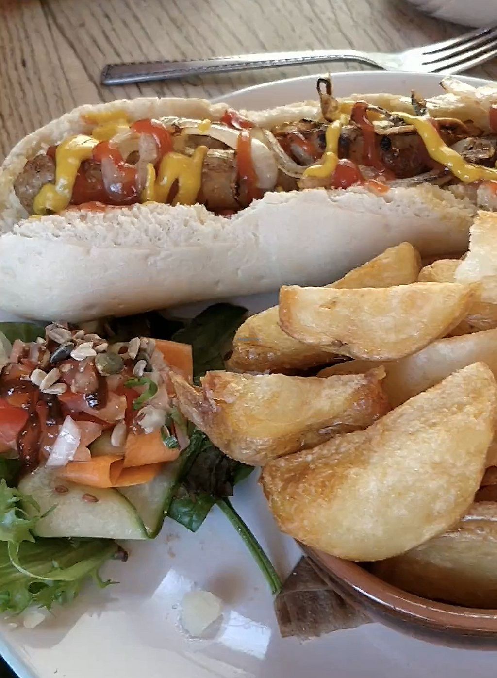 I think it was one of the owners who served us, she was very friendly indeed. I had the bubble and squeak with homemade smoky beans and greens, and my friend had the vegan fish finger sandwich, both meals were lovely. The place is small, but very nice indeed and has a good atmosphere.