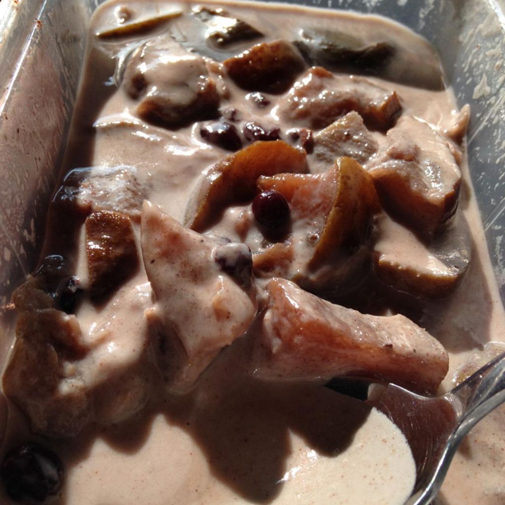 dessert in take away box- stewed fruit and coconut cream
