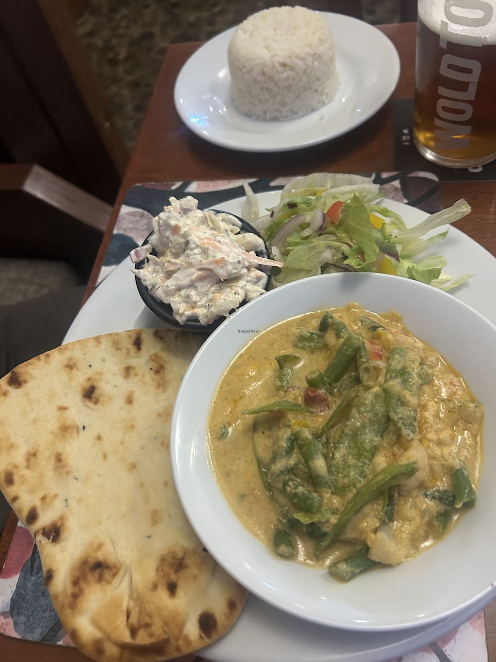 Serves meat, vegan options available. Village pub offering a few vegan items such as penang curry, chicken style vegan strips, Quorn burger, Quorn sausage & onion roll, and more. Serves Quinoa chilli on Sundays. Open Mon 16:30-21:00, Tue 16:30-23:00, Wed-Thu 16:30-21:30, Fri 16:30-00:00, Sat 15:00-23:00, Sun 12:00-23:00.