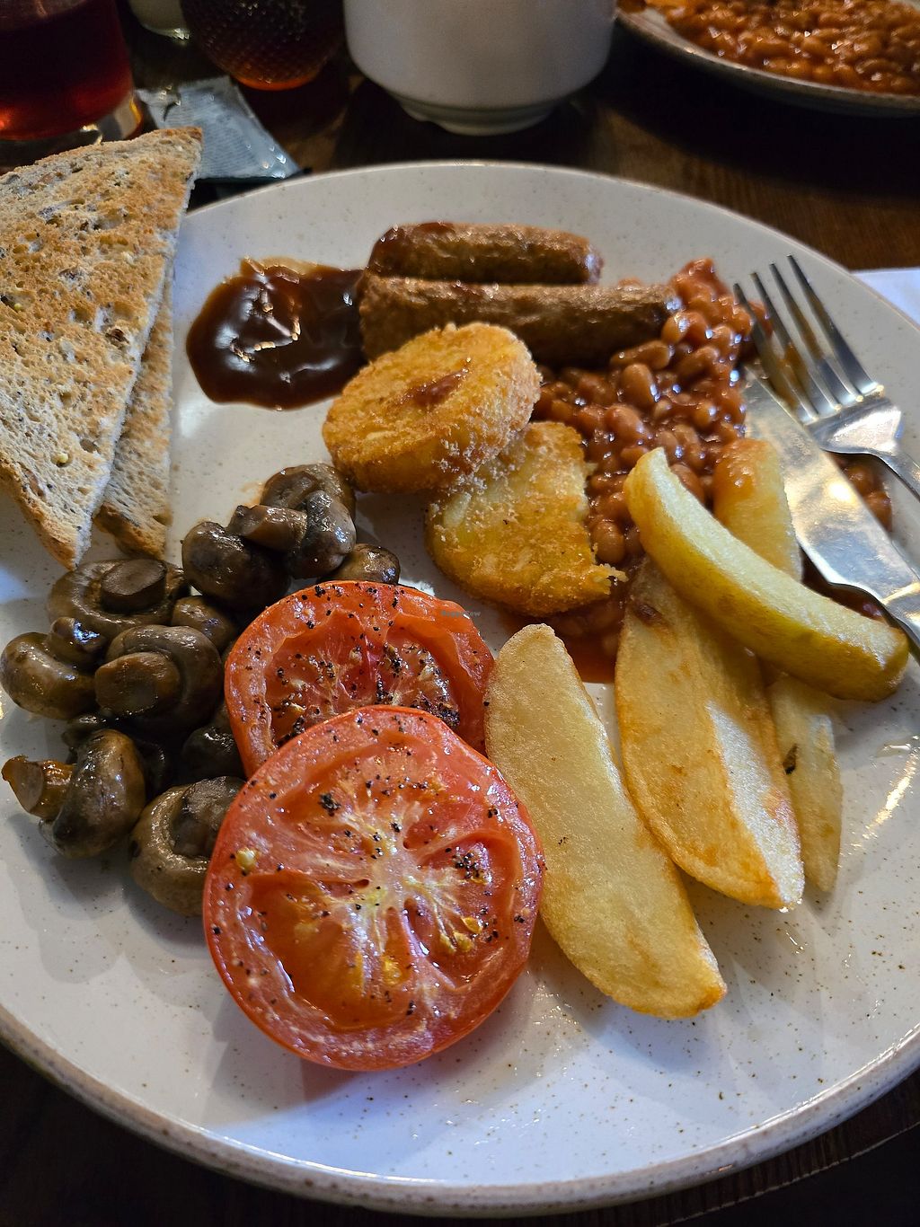 Cosy friendly pub with open fire. We weren’t expecting much but pleasantly surprised to find a vegan menu with at least three options. The vegan lasagne was absolutely amazing - lentils and soya based and full of flavour and a creamy topping. Fresh side salad and the most delicious pub chips ever!