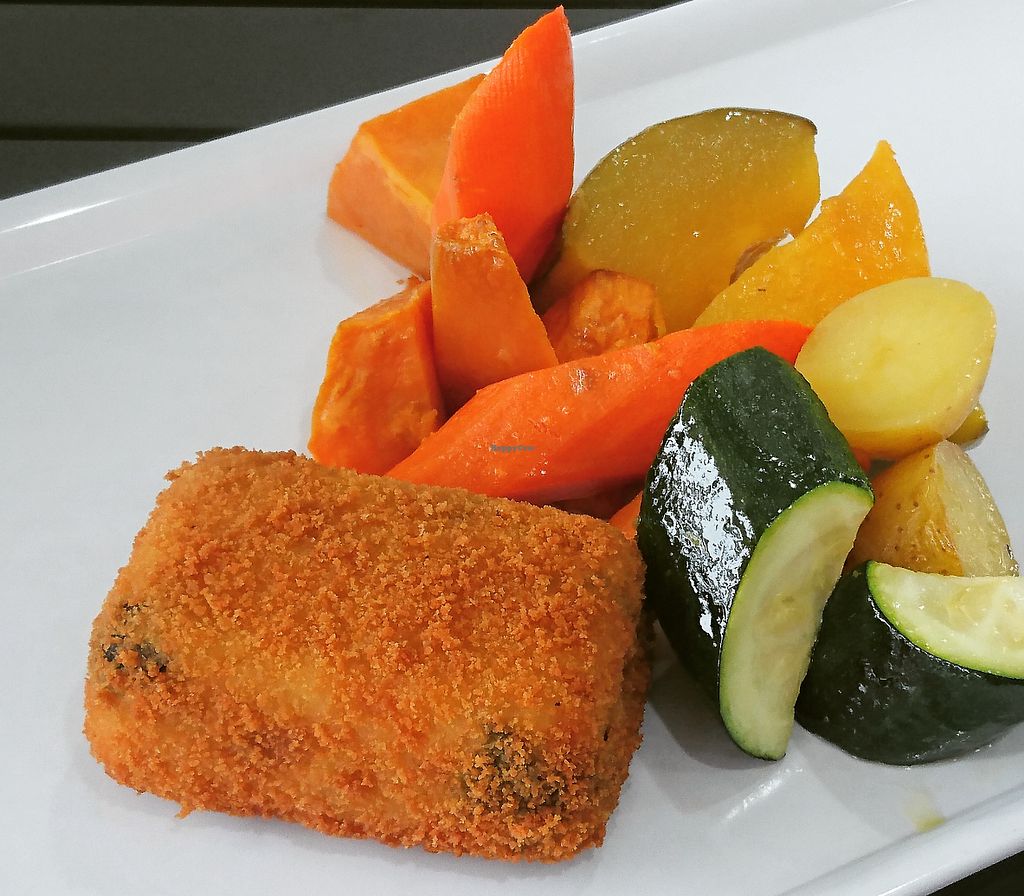 Spinach and semolina loaf with roast vegetables