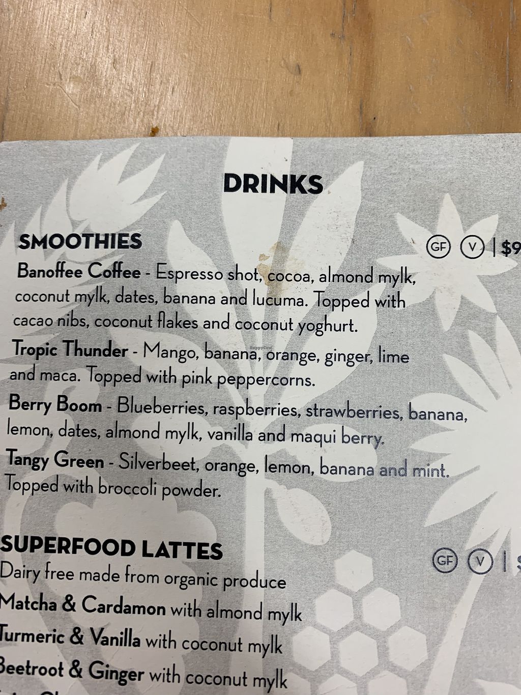 Smoothie menu